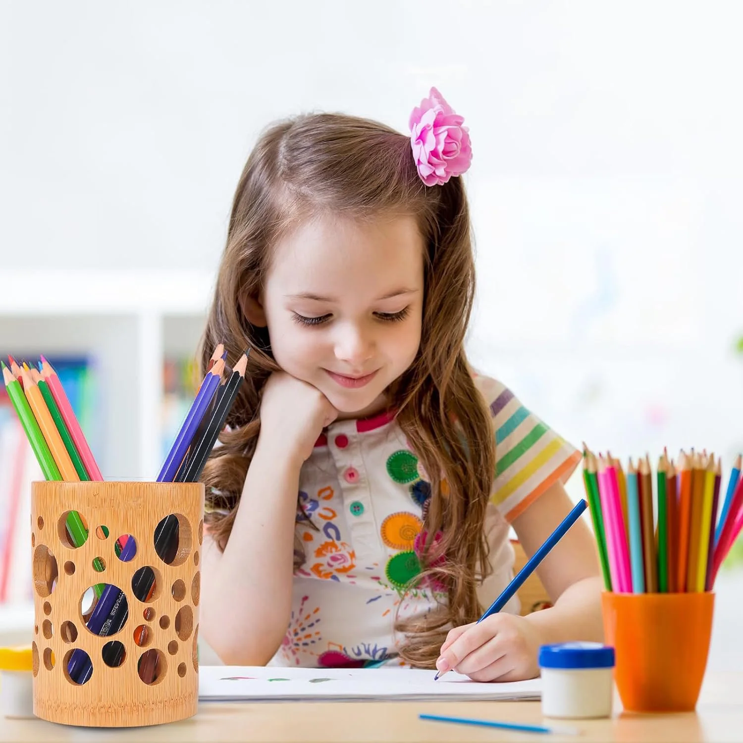 Crafted from durable, moisture-resistant bamboo, this versatile holder is perfect for storing cutlery, makeup brushes, toothbrushes, or desk accessories. The hollow-out design ensures proper ventilation, keeping items dry and hygienic. Its compact yet sturdy construction makes it an ideal addition to countertops, vanity areas, or office desks, blending seamlessly with modern, rustic, or minimalist décor.