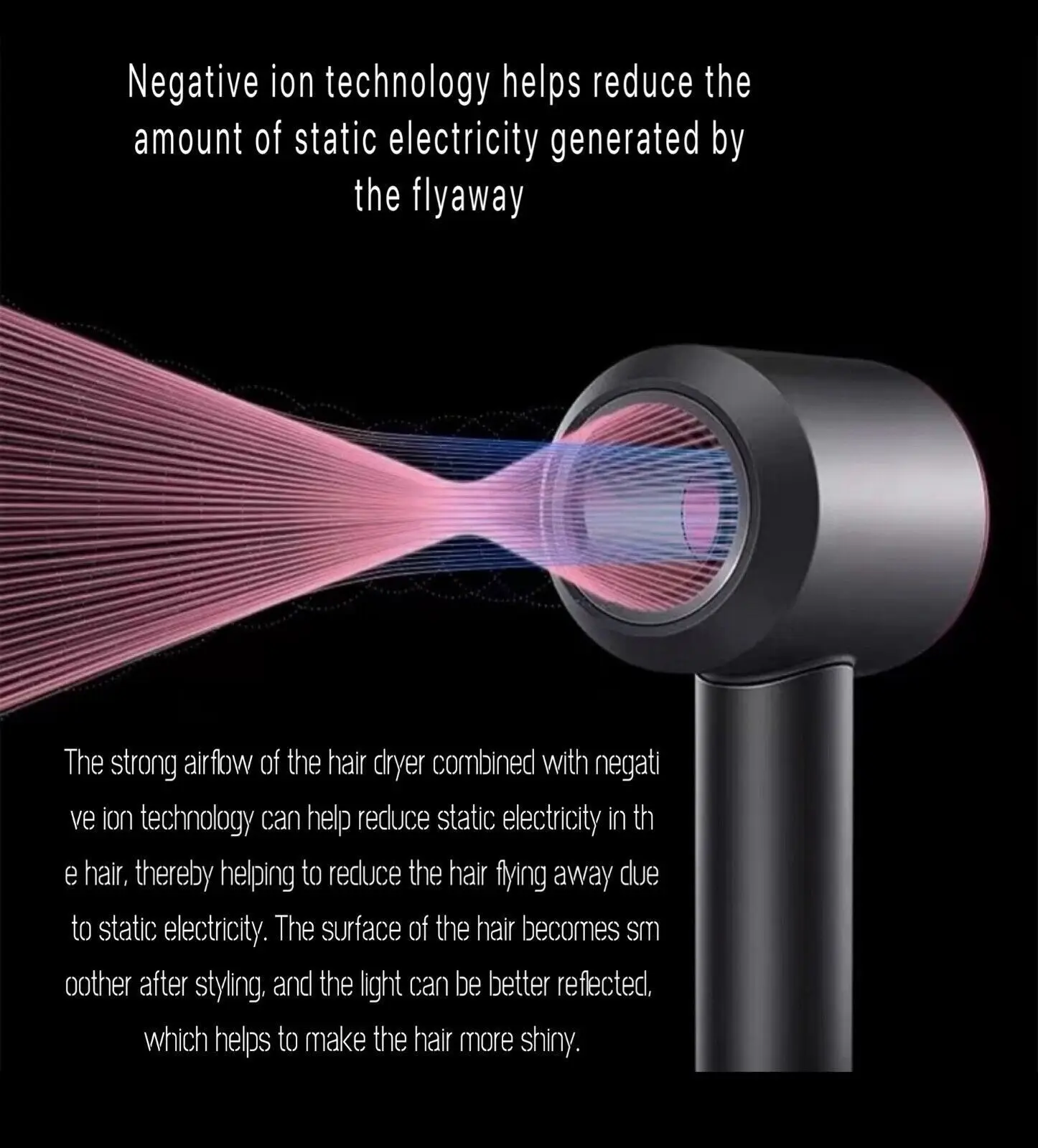 Featuring advanced negative ion technology, this powerful dryer reduces static, enhances shine, and improves hair manageability. The lightweight, ergonomic design ensures effortless styling, while multiple heat and speed settings provide full control for all hair types. With a sleek, modern aesthetic and whisper-quiet operation, it is perfect for everyday use or travel.