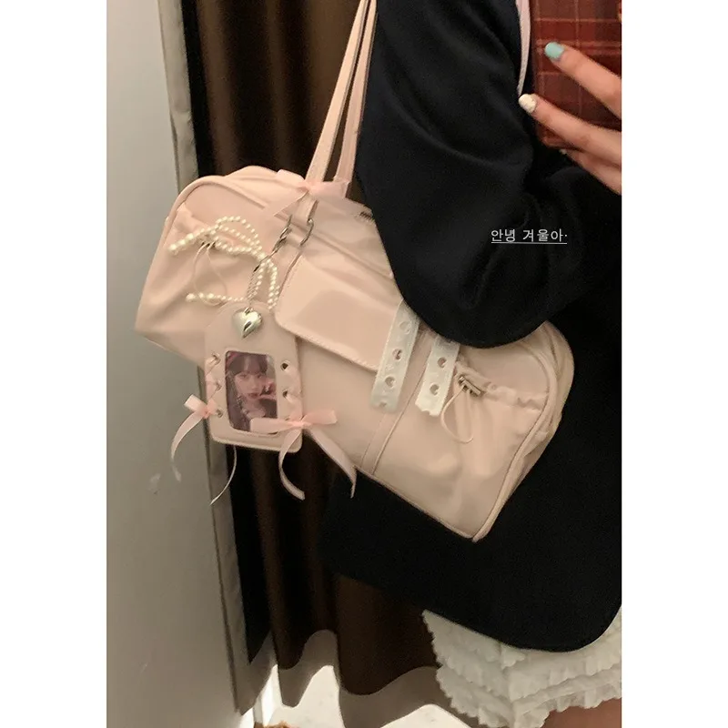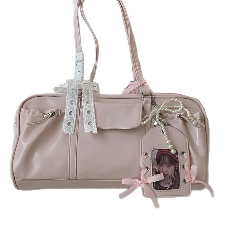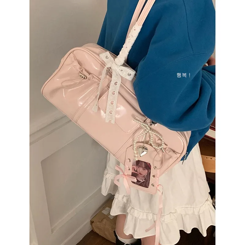Keywords: kawaii ita bag, glossy shoulder bag, photo card display purse, Korean style bag, soft girl aesthetic, Y2K handbag, PU leather shoulder bag, transparent pocket purse, anime merch bag, cute gift for teens.