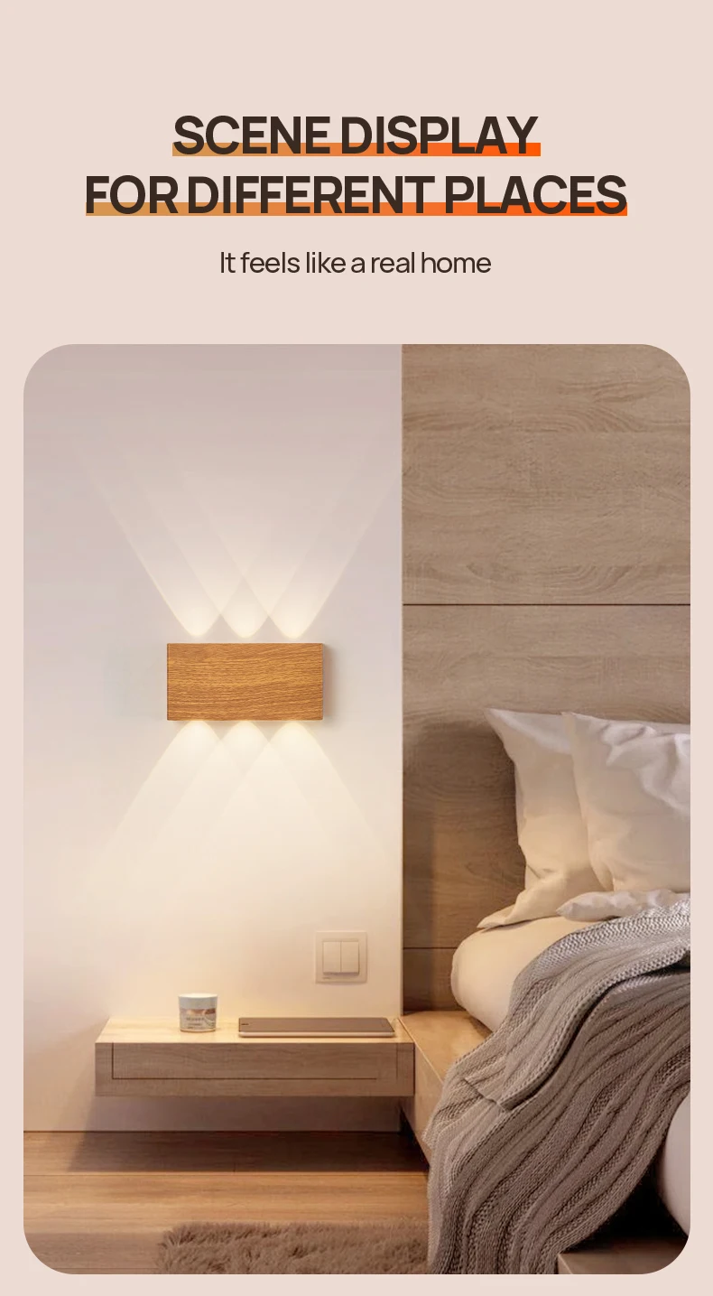 This LED wall lamp is powered by a long-lasting 5200mAh rechargeable battery and is easy to install using a 3M adhesive or magnetic mount — no wiring required. Available in multiple finishes including black, white, walnut wood, and natural wood, it’s designed to complement any modern décor.