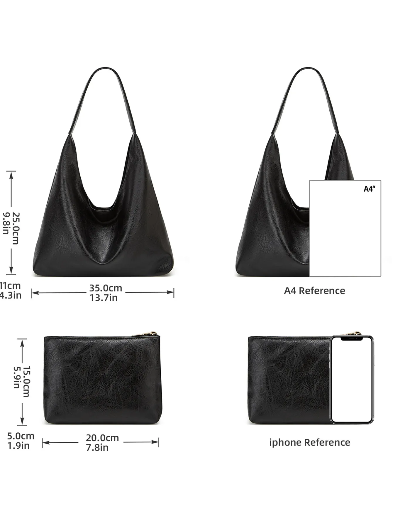 Slouchy Faux Leather Shoulder Bag with Matching Pouch