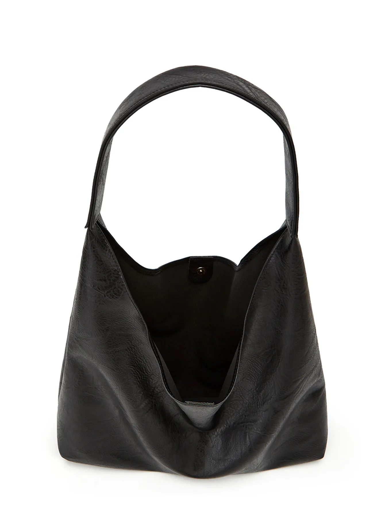 A modern blend of minimalism and function, this slouchy faux leather shoulder bag is your go-to for everyday elegance. Crafted from soft, supple material with a fluid drape, it features a spacious interior that accommodates all your essentials—from wallet to tablet. The sleek, seamless silhouette is complemented by a coordinating zippered pouch for added organization. Lightweight and easy to wear, this bag transitions seamlessly from weekday errands to weekend outings.